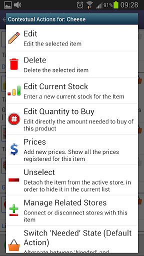 Perfect Shopping List can also store the target stock for each item. Before go shopping, you can enter the current stock and Perfect Shopping List will calculate the necessary amount to reach the target stock.