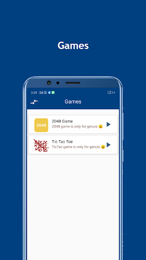 List of games provided so that you can enjoy your time by playing various games like TicTac, 2048 etc.