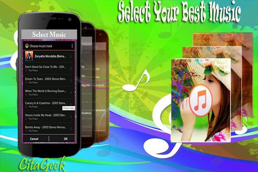 Also you can select your favorite music track for slideshow and with available trimming option you can add to slideshow video...