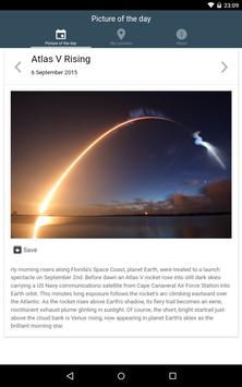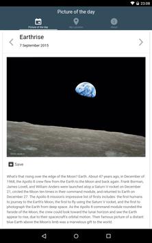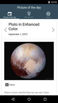 With this app you will enjoy watching the amazing Astronomy Picture of the Day and the satellite image by Landsat 8 for your device location.