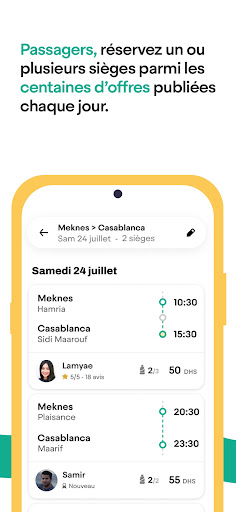 Temukan komunitas carpooling pertama dan terbesar di Maroko, dan gunakan alat transportasi masa depan!Ubah diri Anda sebagai co-pilot dan sedekat mungkin dengan alamat keberangkatan Anda.Dan jika Anda yang memimpin, bersiaplah untuk membuat neraka menabung dan rapat.