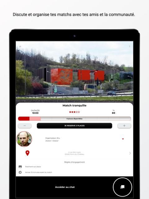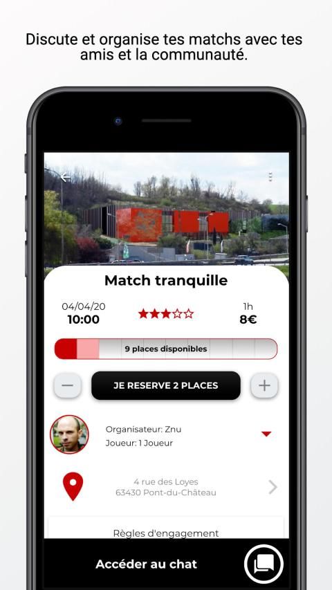 3. Tu peux discuter avec le joueur inscrit (pour te renseigner sur le niveau, demander un covoiturage...) ;