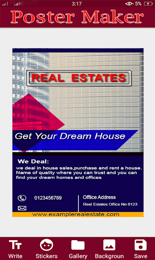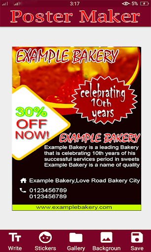 Poster Maker providing you facility to create poster now easily .Beautiful poster design for poster making with large collection of beautiful stickers you can use for poster designing. Create all types of poster such as promotional posters for advertisement and other types of poster like Birthday, festival sales poster, Business poster and product promotion.