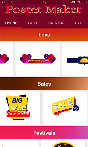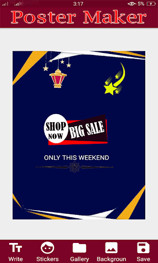 Best poster maker through you can design your poster for Advertisement and Sales banner easily. Huge collection of Sales ,Festivals,Love Stickers that you can