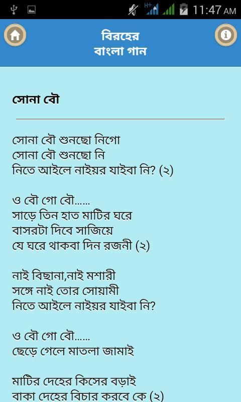 Bangle song and bangle sad song is the most remarkable part of Bengali history and culture. In this application we have included some sad bangle song that might make you cry. All we know that Bangladesh is full of history and the history has a deep relationship with its music and songs.
