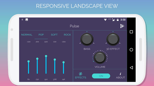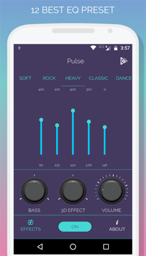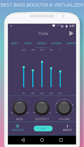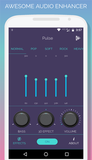 Pulse is an audio enhancer with multi-functions like five band Equalizer, Bass Booster, Virtualizer, Loudness Enhancer, Reverberation. Pulse Equalizer controls the audio frequency of audio. Using Equalizer, the Audio frequency can cut or boost. Pulse Virtualizer enhances the resonance of sound. Pulse Loudness Enhancer will boost the system volume. Reverberation helps to change the abstract environment. No need to click one more time to save preset. Simply select any one of the users preset then starts to equalize the audio frequency. Also, you can open your mobile's default music player from the pulse, its included to make the user experience better. After Installing this app, You can feel the "REAL PULSE".