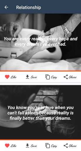 You can save images in your phone. Beautiful Offline Quotes contains the collection of best quotes. Beautiful Offline Quotes has the great user interface and easy understandable for its users. No need to create any account or share information with this app. You can just install and read your favorite quotes with Beautiful Offline Quotes app.