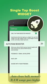 Widget: -Enable RAM Booster Pro widget, adjust widget’s position, and tap on widget to boost anytime you want.