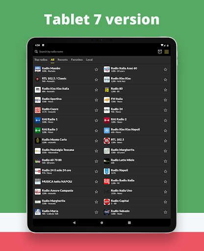 Our application allows you to listen live to all Italian FM radio stations and online radios from Italy. Choose what you want to listen to: news, sports, music and more!