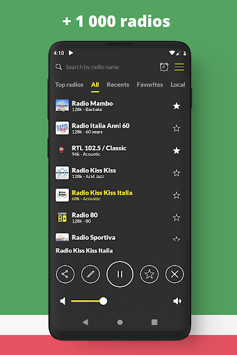 The Radio Italy app needs a 3G, 4G or WiFi internet connection