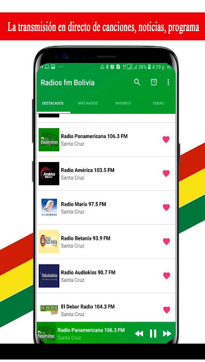Radios fm Bolivia a very friendly and very easy to use design where you will find better Radio de Bolivia live free, Enjoy the best radios, on your mobile device (phone and tablet) Android
