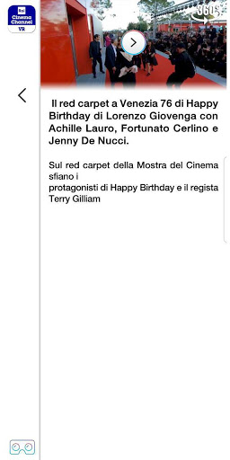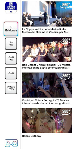 Met Visors kunt u een volledig ondergedompelde ervaring ervaren in de cinema van RAI's "Virtual Room" en kies of Om aan de zijkant van de sterren te zijn op de rode tapijten van de belangrijkste bioscoopfestivals of bijwonen van speciale interviews of om te worden gekateerd in de filmwerelden van exclusieve korte films.