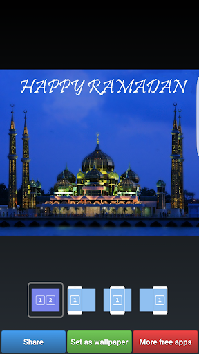 Happy Ramadan (Ramadan Kareem/ Eid Al-Fitr/ Hari Raya Aidilfitri) HD wallpapers, including images of the mosque, moon and ketupat.
