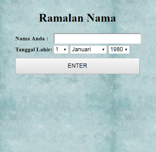 Aplikasi ini hanyalah permainan untuk meramal nama lahir anda. Anda tidak disarankan percaya sepenuhnya pada hasil ramalan ini, karna permainan ini hanya untuk hiburan semata.