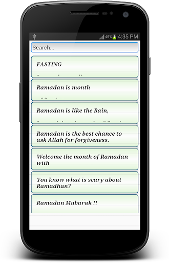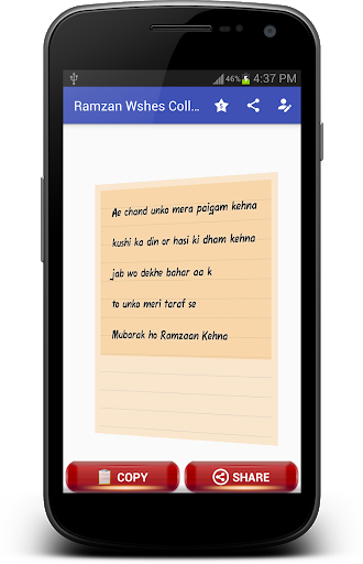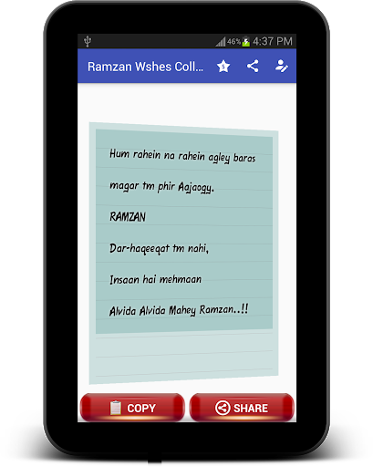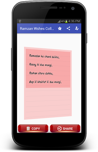 Ramazan 2018 (The Holy month of Muslims) is comming. This app "Ramzan Mubarik Wishes - SMS and Status" has huge collection of best Ramadan (Ramzan) sms messages and status updates to wish your family and friends a blessed "Ramzan Mubarik". This app contains