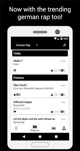 With RapNext you can easily keep tabs on all your favorite artists, without checking multiple websites like you used to! Get notified if an artist you follow releases new music or explore new music to love! The best songs available instantly. Love Rap, HipHop, Trap or RnB? RapNext got you covered! US and german rap!