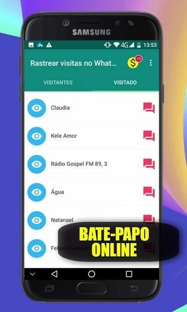 Nota: Rastrear visitas no whatsapp e seus fabricantes não garantem precisão ou autenticidade de quaisquer dados apresentados, embora extremo cuidado é tomado para mostrar os resultados mais precisos. Nós não somos patrocinados ou apoiados pelo, ou afiliada ao WhatsApp Inc. Este aplicativo é uma simulação de luz feito apenas para entretenimento. Nós não compartilhamos informações pessoais (incluindo informações de contatos, registros de chamadas, etc.) com quaisquer terceiros, é apenas usado em nosso algoritmo probabilístico.