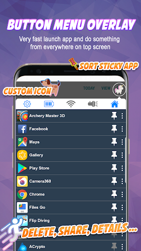 More with this 'Quick Menu' overlay button you can perform actions such as: Delete applications, Share applications, and show application details in settings, or open them in Gplay.