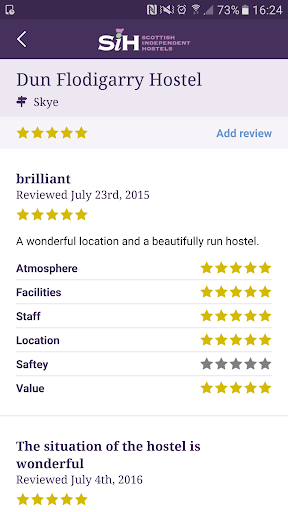 Hostelling in a Scottish Independent Hostel is a great low-cost way to explore Scotland, always assured of a friendly welcome. Our Association represents 127 individual privately-run Hostels located throughout Scotland. All our Hostels have self-catering kitchens and other shared facilities and offer a range of rooms, from traditional bunkrooms to private ensuite family rooms to suit backpackers, outdoor enthusiasts, families, couples and groups. Use this app to help you find the most appropriate accommodation for you - as well as how to get there and useful reviews!