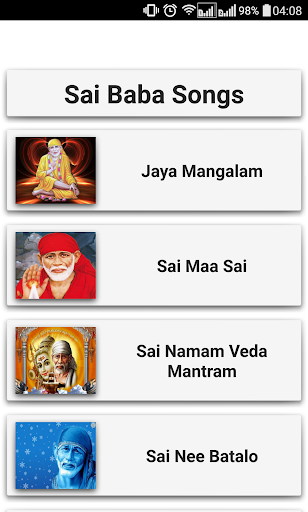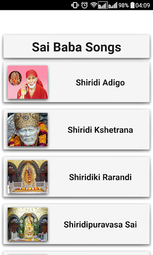 يحتوي تطبيق Sai Baba Keabotional على الأغاني التعبدية التيلجو التالية.