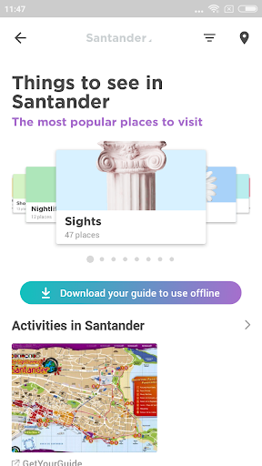 ➢ Download your lists to view their recommendations and photos 100% offline. Save on roaming charges and download your guide to Santander before leaving the house.