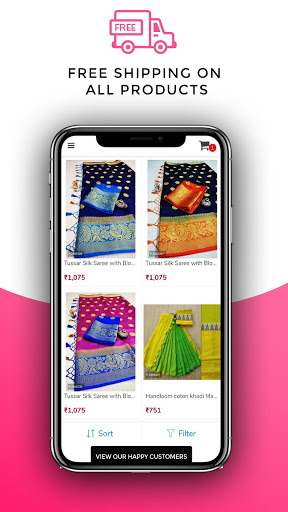 Saree Online Shopping App comes with a user friendly interface where user can easily select, filter the product by color, size, type, etc. Its a great platform for users to explore variety of products and categories with great features like C.O.D & Free Shipping On All Products.