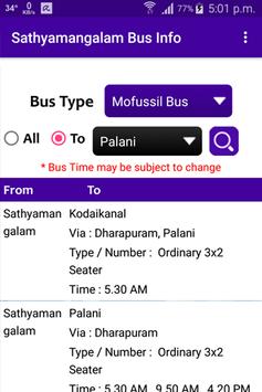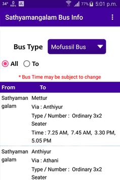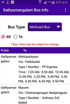 This app provide all information about Sathyamangalam Mofussil bus and Town bus.