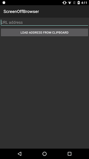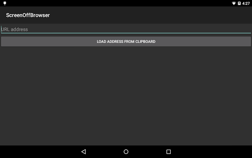To use, select Share from any application and choose ScreenOffBrowser as the target. Alternatively, you can long-press a link, choose "Copy to Clipboard", launch ScreenOffBrowser, and choose "Load address from clipboard".