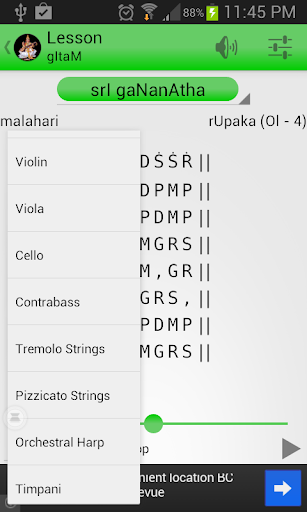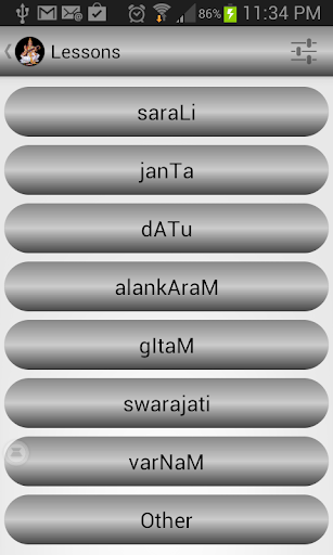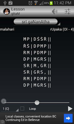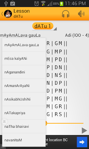 - Basic Lessons can be played in any of the 72 Melakarta ragas