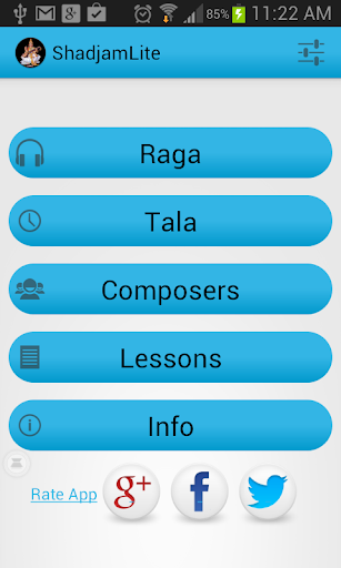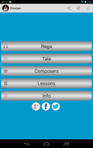 Shadjam is a Carnatic (Indian classical) music application. It provides information about Ragas, Talas, popular Composers in Carnatic music. It also includes Carnatic lessons with different playback options for learners. Complete list of features are listed below. The idea behind this application is to make information and tools related to Carnatic music available in one place.