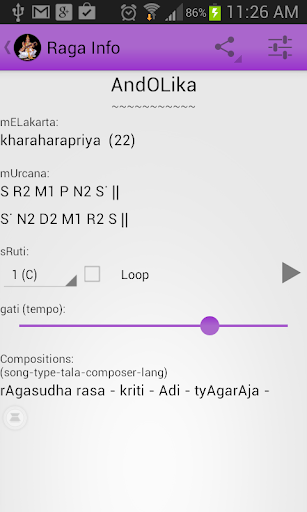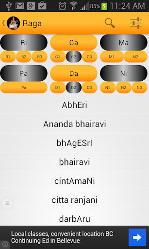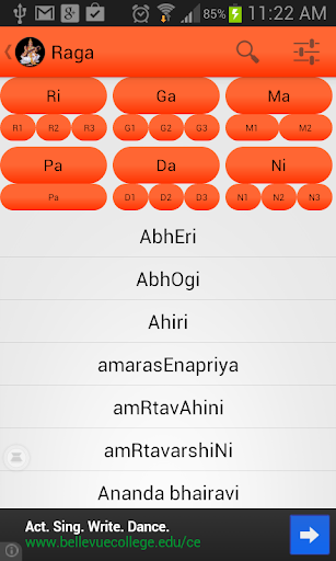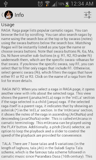 - Thousands of Ragas with information and playback of Aarohana and Avarohana for each Raga