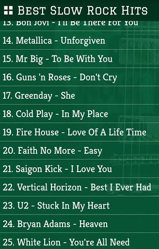 - Koleksi lebih dari 100 lagu slow rock terbaik