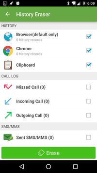 ► History eraser: Can erase your browser history, Clipboard data, call history, SMS/MMS