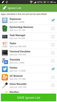 Apps checked in ignore list will not be killed automatically.