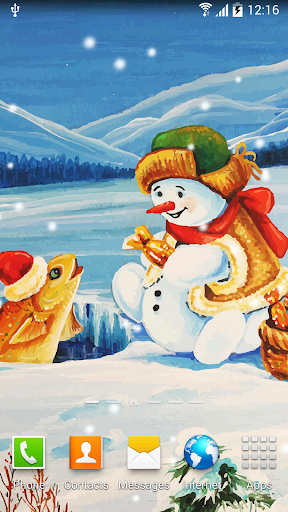 How to set free winter live wallpaper on the screen of your phone: Home → Applications → Settings → Display → Wallpapers → Home screen wallpaper → Live wallpapers → Snowman Live Wallpaper