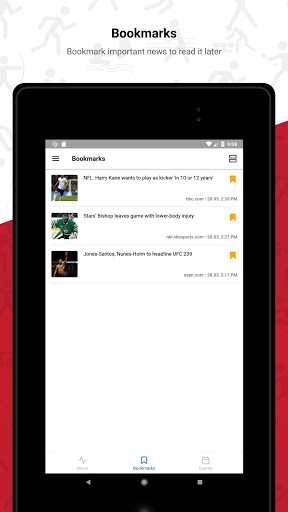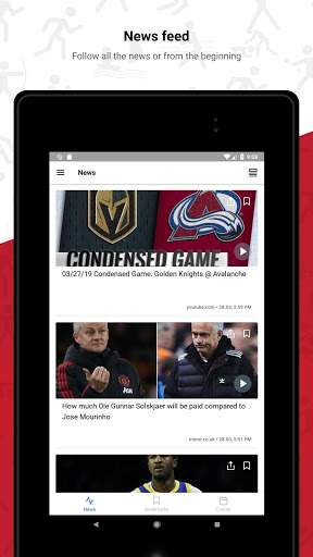 Follow the sport news and scores, the progress of matches, professional leagues, success of your favorite teams and sportsmen in the Sports News app!