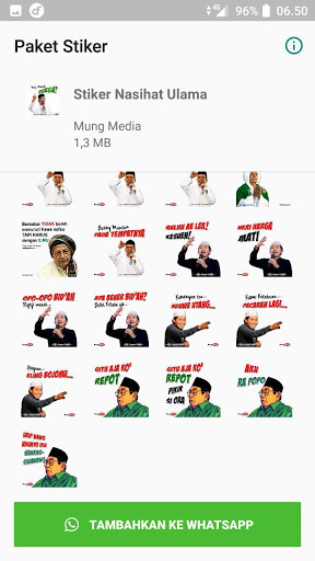 Nachdem alle gewünschten Aufkleberpakete zu WhatsApp hinzugefügt werden, können Sie Ihre Mobilfunkdaten erneut aktivieren, und WA-Aufkleber Ulamas Rat kann sein Wird in der Anwendung WhatsApp verwendet.