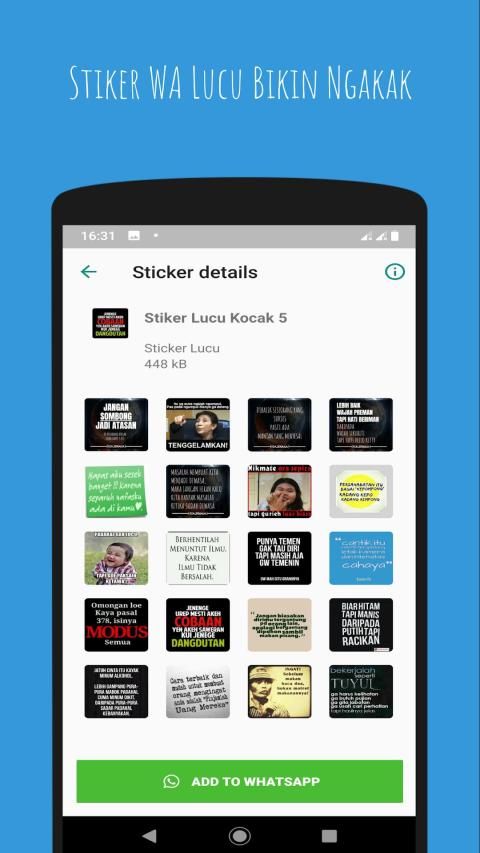 Aplikasi Stiker WA Lucu Bikin Ngakak ini bakalan bikin kamu tertawa ngakak pake banget. Yok download Lucu Bikin Ngakak WAStickerApps di hp kamu.