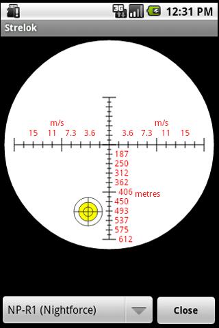 Also, you can select reticle from list and see wind and distance corrections on reticle without turning knobs. You can send by e-mail the reticle image with holdovers and ballistic table.