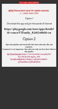 Get free YouTube subscribers from real people! The network is quick and simple to use. Send Your YouTube channel link and get more YouTube subscribers today!