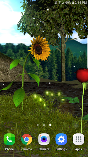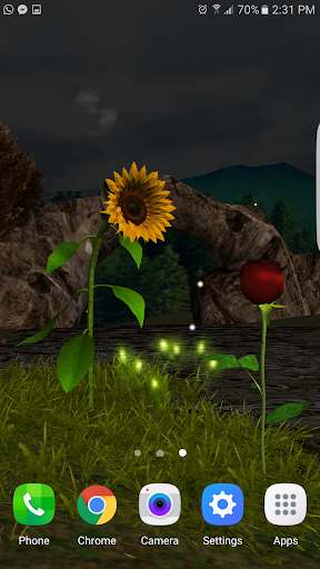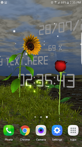 Animated livewallpaper of sunflower and rose with several effects and options with day and night cycle, weather options, show date, battery, time and personalized text, some options aro just in full version