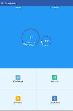 Super Booster, most easy to use Android phone booster for you to clean junk files, reclaim storage, boost memory, manager autostart and preinstalled apps.