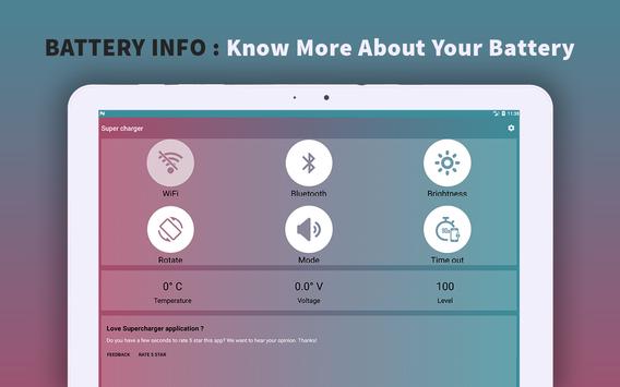 If your battery is draining fast, use Supercharger Booster to speed charge your battery for better battery life and performance.