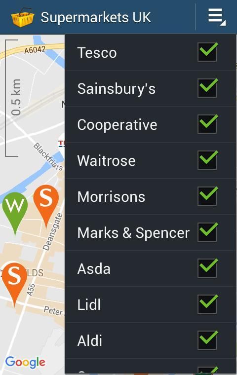 This is the first app of its kind in the UK that combines all major supermarket brands on a map. It allows you to easily locate your nearest supermarket wherever you are in the UK. You can also check for opening times of your nearest store in case you are not sure when it will close.