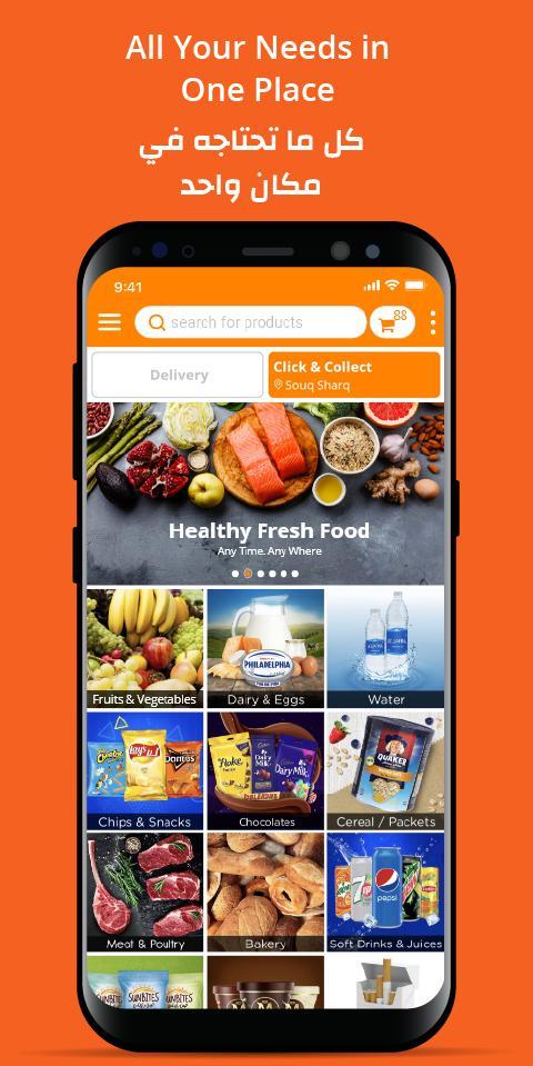 Stay safe & Get your groceries at your doorstep directly from your mobile, or just select “Click & Collect” shopping mode to place your order & pick-it up from the store while you’re seated in your car.