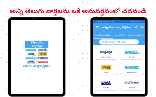 అన్ని ప్రధాన ఆంధ్రప్రదేశ్ మరియు తెలంగాణ వార్తాపత్రికలను ఒకే అనువర్తనంలో చదవండి.