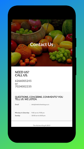 Convenience at your fingertips: Shop online on The Kitchen King app to get fresh farm vegetables, fruits, & dairy products right at your door-steps. Now you don’t need to carry heavy grocery shopping bags around!