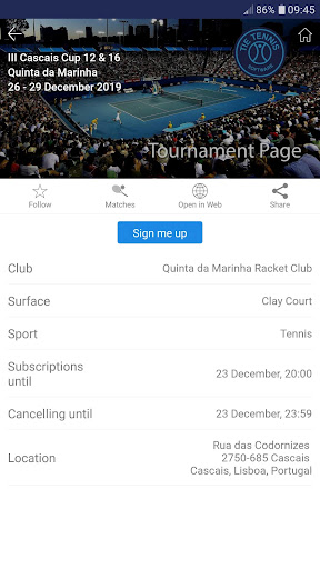 Whether you play Tennis, Padel, Squash or any other racket sports this app brings together everything you need to organize your day-by-day activities. It has a personal calendar, match organizer, chat groups, news, social tournament creator, court bookings, events and official tournaments sign-in and you can find rankings and competitive history from other players. Receive notifications about your games, classes, bookings. You can follow players and link with clubs to stay connected with them. This App is a module from the Tiesports.com software, integrated with TIE CLUB and TIE COACH and linked to the social networks tietennis.com and tiepadel.com. Promote your own matches, invite your friends and find more players. Have fun and play more!