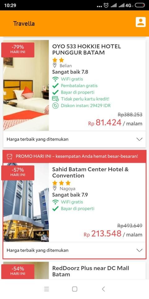 Tak hanya tiket murah saja, Travella juga punya banyak pilihan hotel murah untuk Anda. Dapatkan banyak promo hotel murah dengan men-download aplikasi Travella di Google Play. Di Travella, Anda juga bisa melihat informasi lengkap mengenai deskripsi, fasilitas, & pelayanan hotel.
