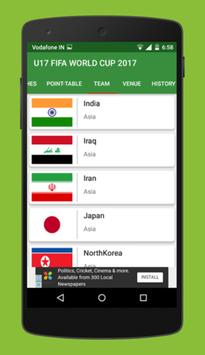 U17 FIFA WORLD CUP - INDIA 2017 This app provide you latest details from u17 football game. App provides you - matches - team details - point tables - latest tweets - news related to football world cup